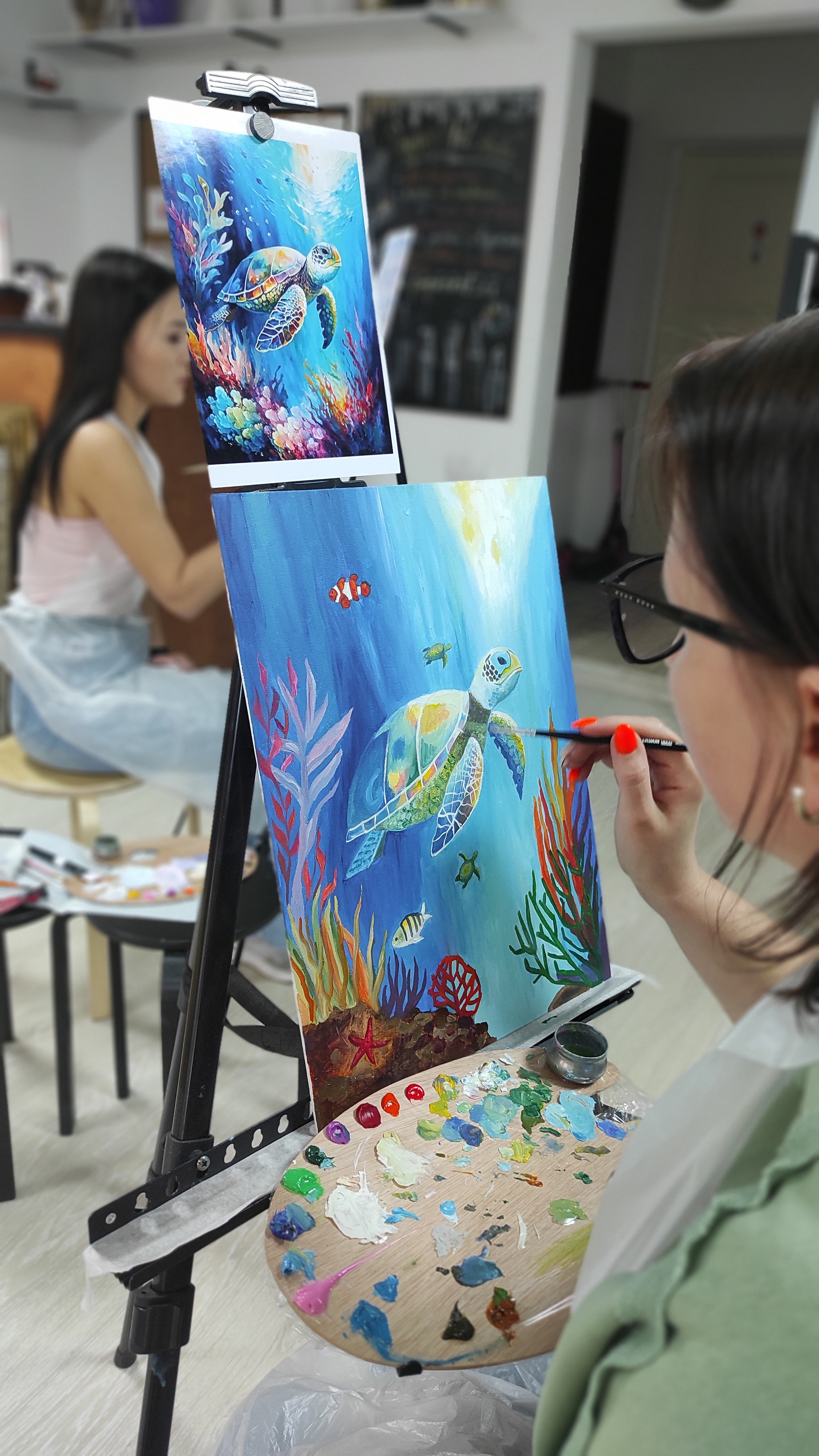 Всё под руководством художника, с музыкой, без спешки, в уютной студии.